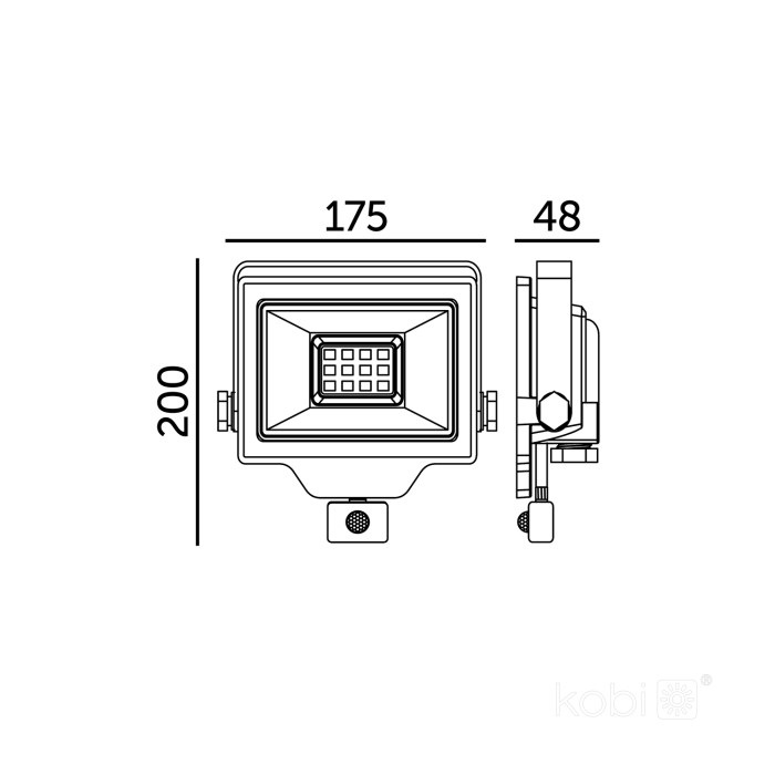 Naświetlacz LED wyposażony jest w uchwyt, który pozwala na swobodny montaż na elewacji oraz regulację nachylenia.